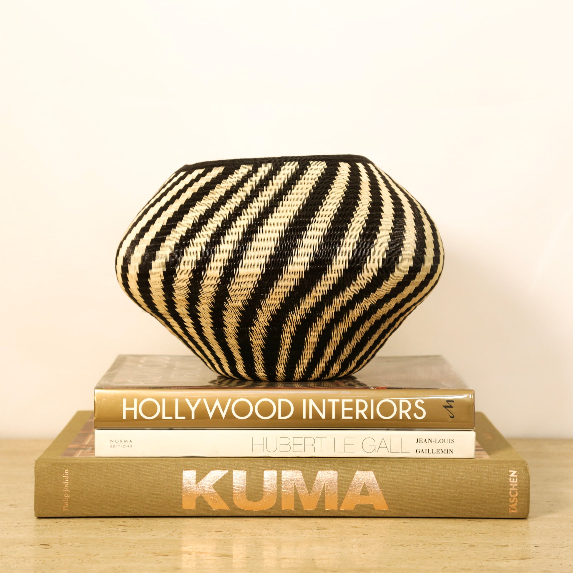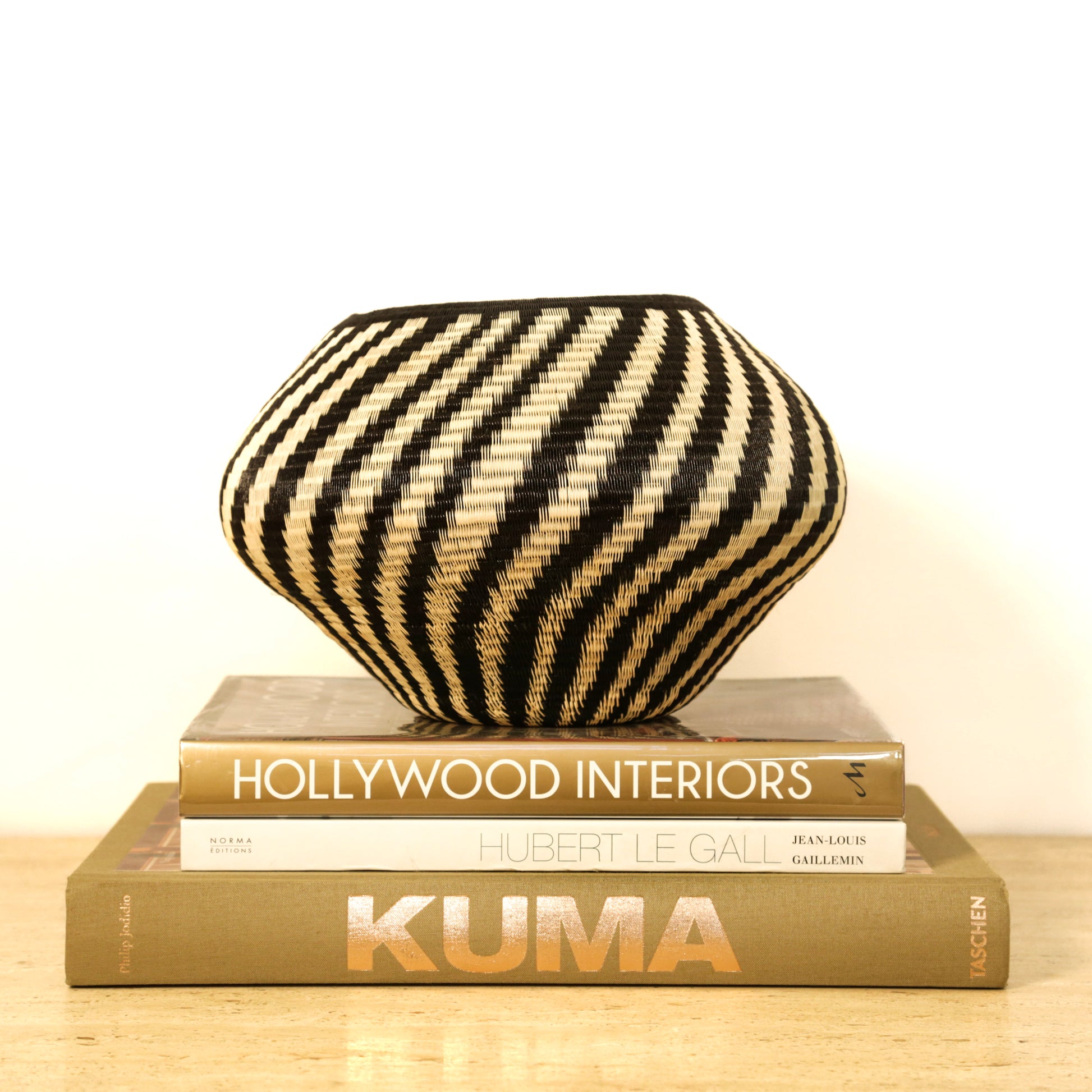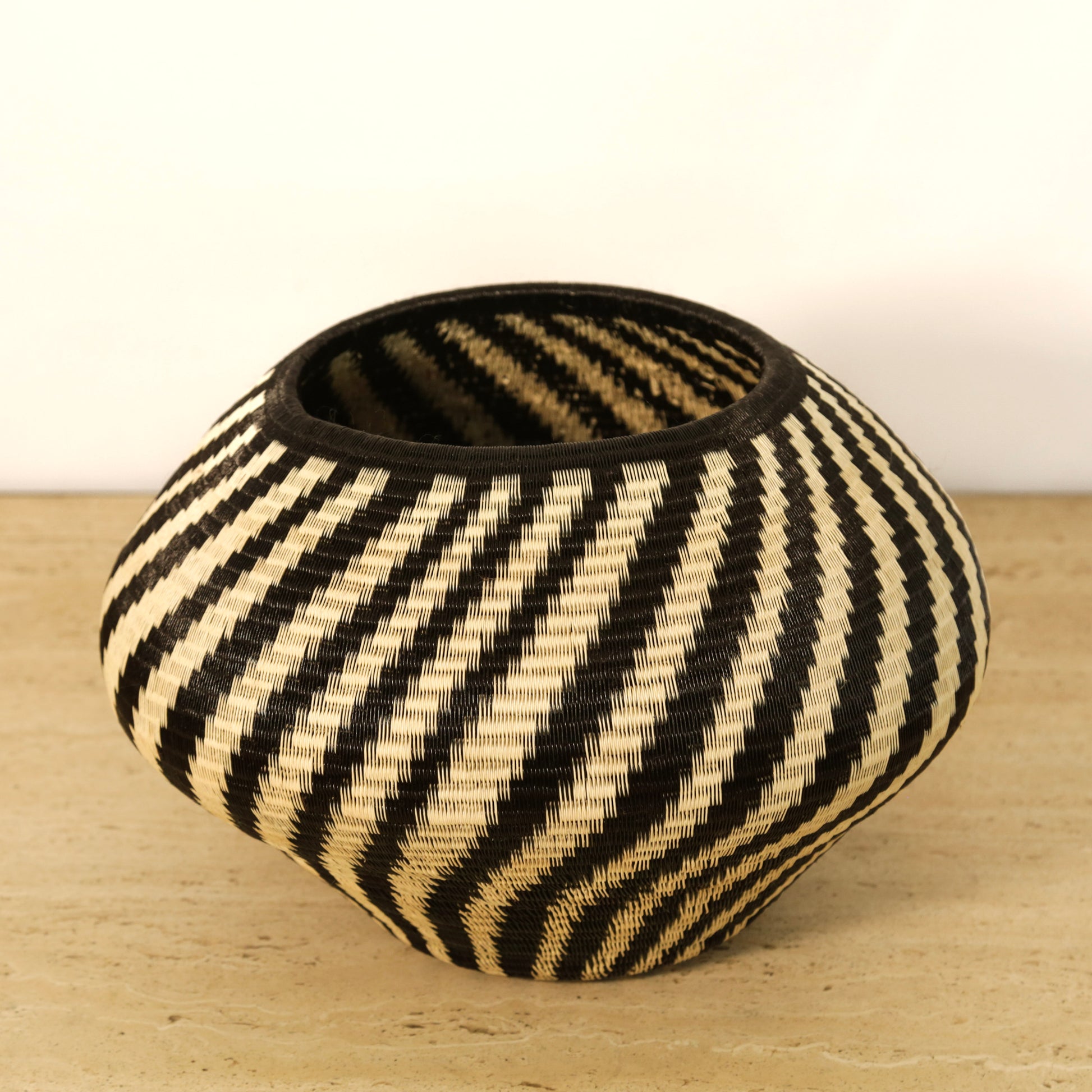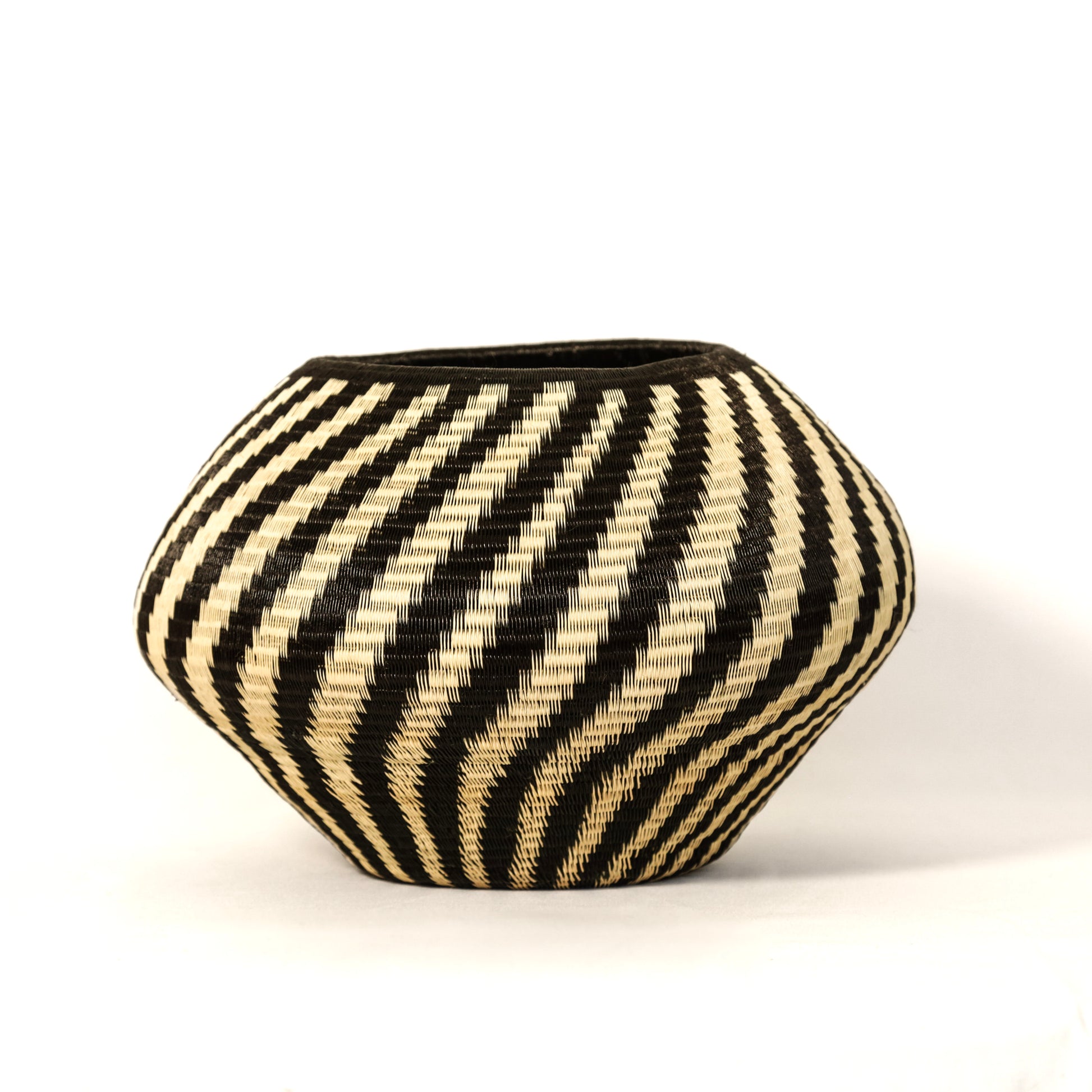 Decorative vase woven by Crucelina and artisan from the indigenous community of Wounnan of the pacific coast of Colombia.