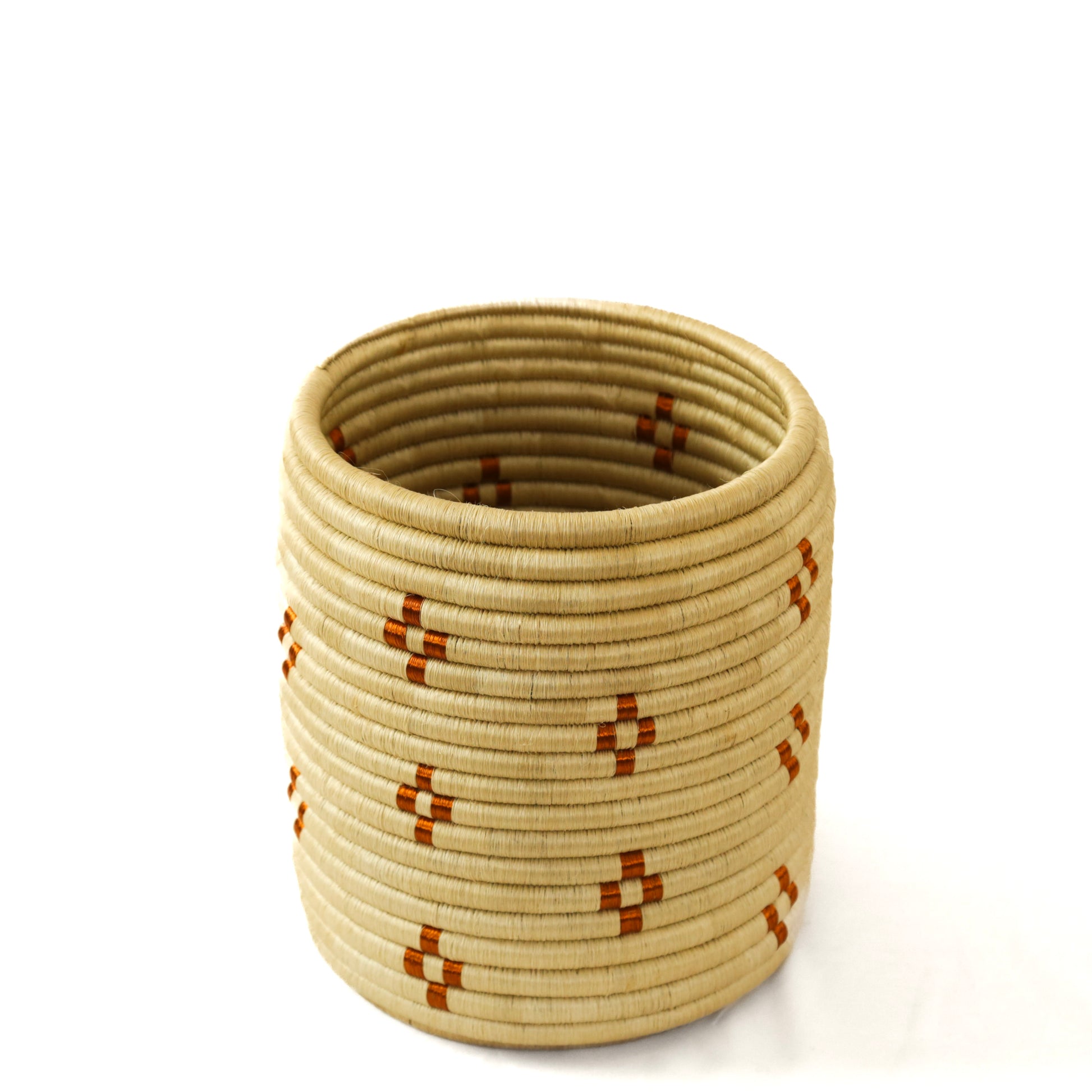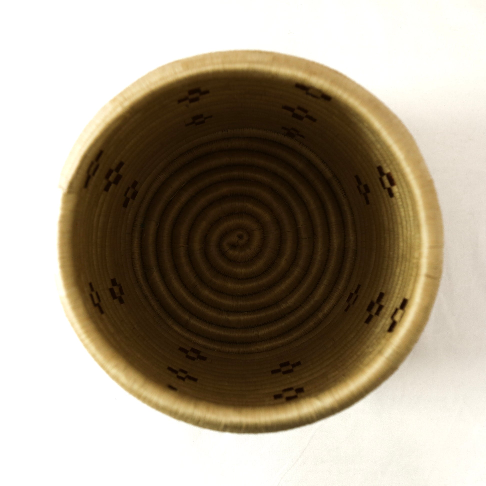 Decorative container, handwoven by Colombian artisans in the region of Guacamayas, Boyaca using the cesteria en rollo technique.
