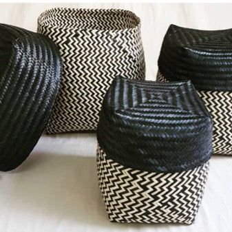 Set of 3 Baskets woven in paja tetera with contrast black cover